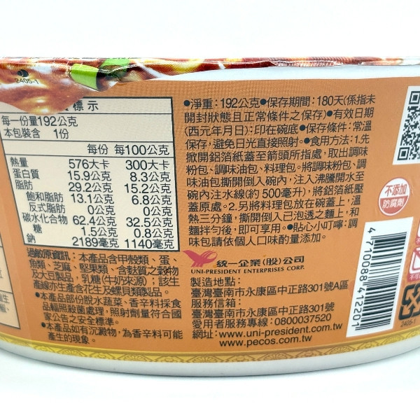 珍味牛肉麵187g