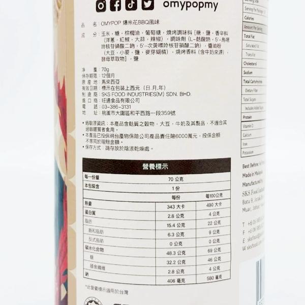 OMYPOP爆米花BBQ口味 70g